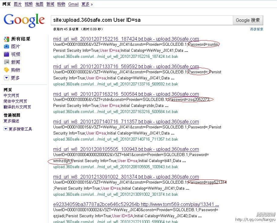 360上传用户隐私的一台服务器,运维除了问题,被google索引到了,然后就悲剧大了